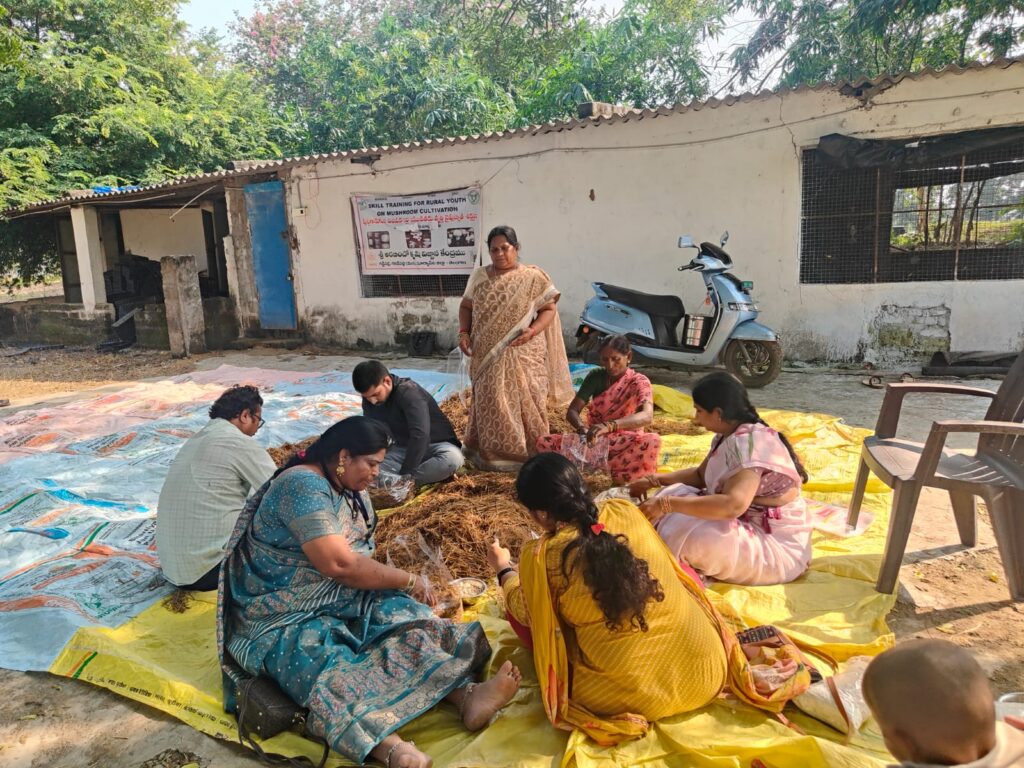 SAIRD KVK-Gaddipally organized a rural youth programme on Mushroom Cultivation on 07.11.2025 at KVK Gaddipally, Suryapet District. The on-campus training, conducted by N. Sugandhi, Programme Assistant (Home Science), provided hands-on experience on practical cultivation technologies including straw cutting, types of soaking methods, drying techniques, and mushroom bed preparation. Participants gained essential skills to initiate mushroom cultivation as a viable enterprise.