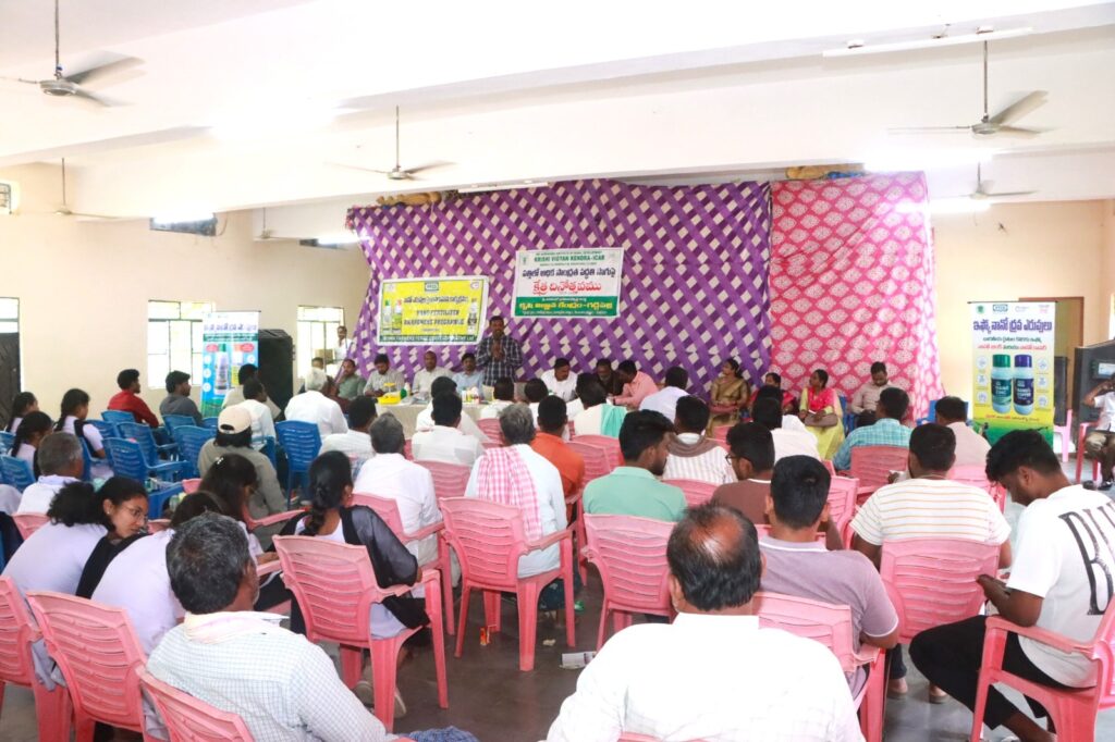 Activity: A. Kiran, SMS (Soil Science), KVK-Gaddipally, participated in a Farmers’ Meeting and Training Programme organized by IPL under the PM-PRANAM Scheme to promote balanced fertilizer use. In this programme highlighted the importance of soil health and regular soil testing, explaining parameters like organic carbon, pH, EC, and texture. He stressed the use of organic manures and bio-fertilizers for improving soil fertility, structure, and sustainability, along with reducing input costs. The objectives and benefits of the PM-PRANAM Scheme were also explained. – Farmers participated: 96