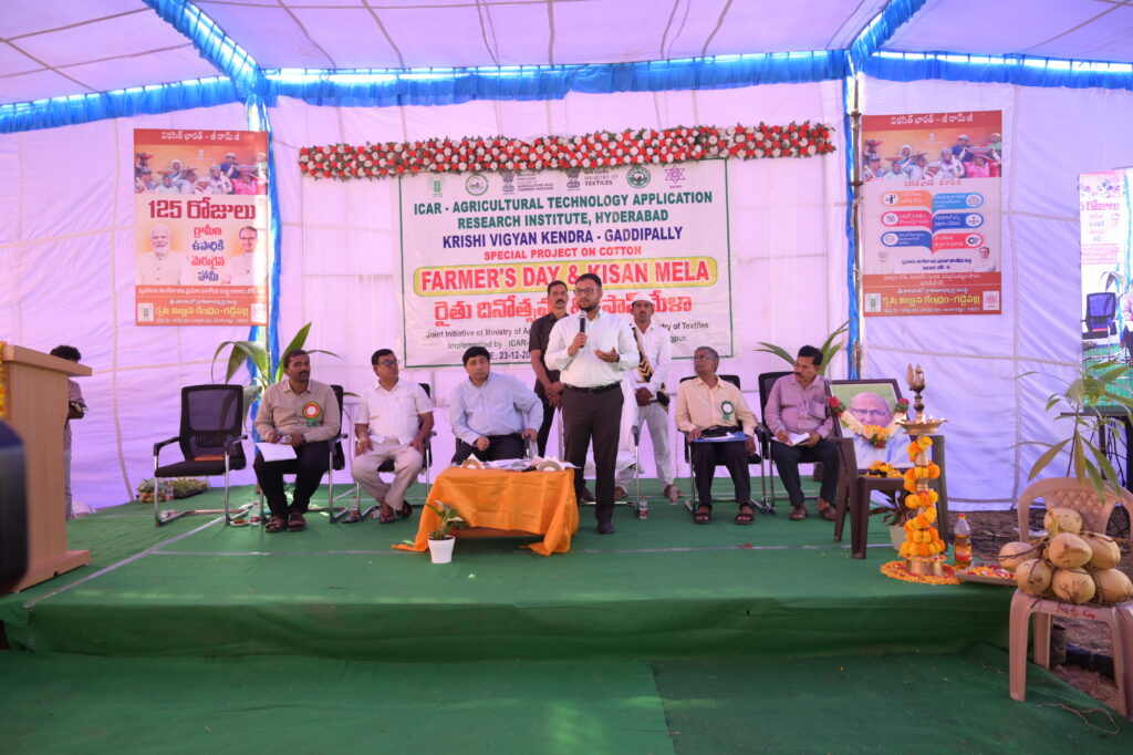 SAIRD-KVK, Gaddipally, celebrated Kisan Diwas 2025 on 23rd December, marking National Farmers’ Day with a Kisan Mela and Agricultural Exhibition under the Special Project on Cotton. The event drew 600 farmers, 60 RAWEP students, ICAR officials, 25 private industry reps, and media, fostering knowledge exchange. Chief Guest Shri Tejas Nandlal Pawar praised the district’s paddy production and urged crop diversification into oil palm and cash crops, leveraging govt schemes and modern tech. Dr. Shaik N. Meera highlighted VB-G RAM G Bill benefits, stressing soil health, farm mechanization, and allied ventures like beekeeping and poultry. Dr. Murugappa advocated shifting to high-value crops, proposing partnerships for improved varieties tailored for Suryapet district. The Collector lauded KVK’s contributions, calling for demand-based production, value addition, eco-friendly practices and Farmer Producer Organizations. The event reinforced KVK Gaddipally’s pivotal role in sustainable farming, blending tradition, technology, and policy for farmer welfare, aiming to boost incomes and prosperity in Suryapet.