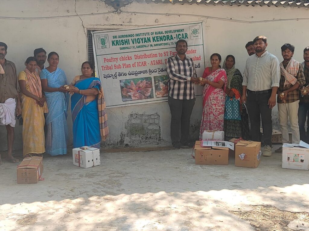 Training and Distribution of Rajasri Poultry Chicks to ST Farmers and Farm Women under TSP by ICAR ATARI Zone X, Hyderabad at KVK, Gaddipally.