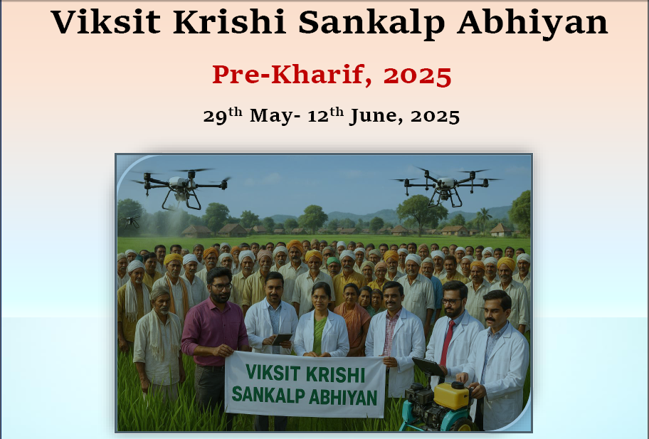 Viksit Krishi Sankalp Abhiyan is a National outreah initiative lanched by ICAR & the Ministry of Agriculture & Farmers Welfare from 29th May to 12th June 2025, iming t connect research inistitutions directly with the farmers.